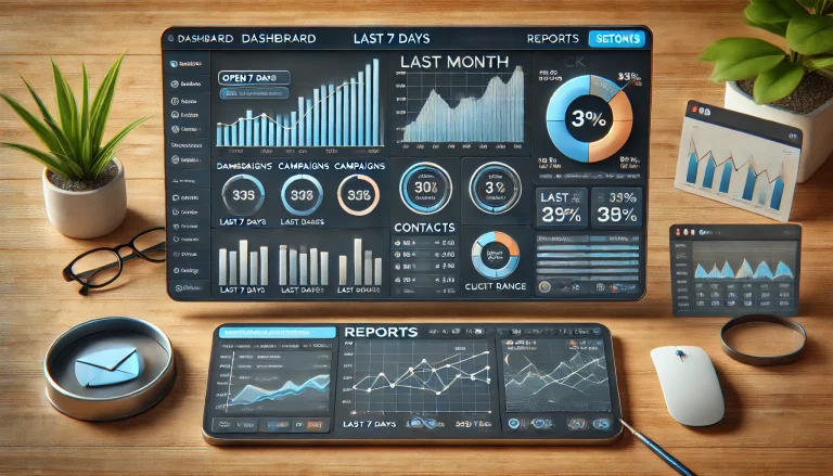- Auf dem Dashboard werden Statistiken zu E-Mail-Kampagnen angezeigt, z. B. Gesamtzahl der gesendeten E-Mails, Öffnungsrate, Klickraten und eine Zeitleiste der letzten Aktivitäten.